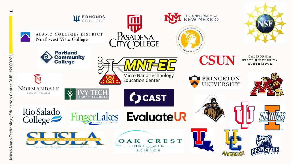 The Micro Nano Technology Education Center is a community college led National Science Foundation Advanced Technological Education Center founded on the idea that by working together to evolve and improve community college micro and nanotechnology technical education programs, we will enhance the quality of education for MNT students who then become higher quality technicians for the MNT industry and skilled technical workforce.