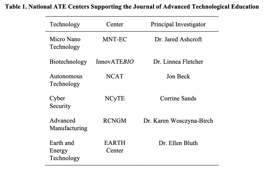 As new ATE National Centers are launched, J ATE will incorporate their expertise into its