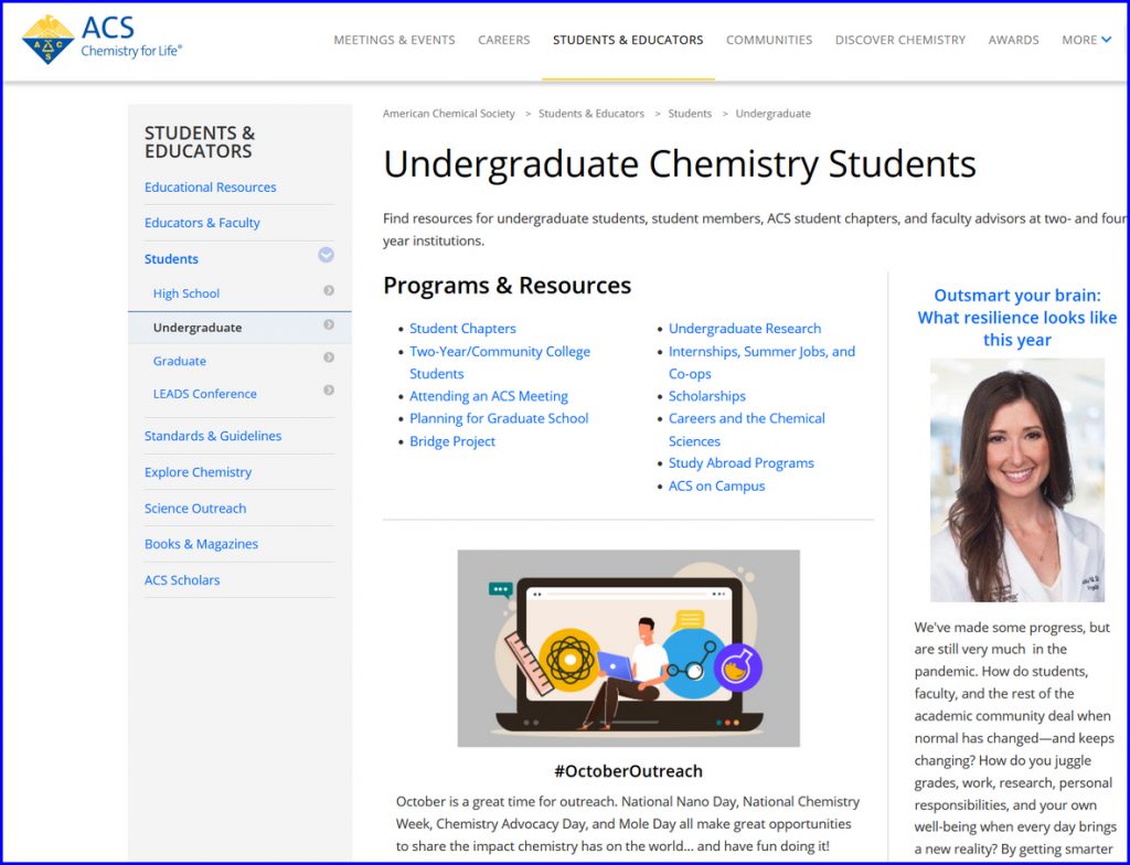 Update 28OCT from Paul Webster (again! Thanks Paul): The American Chemical Society has a wide array of resources for students.