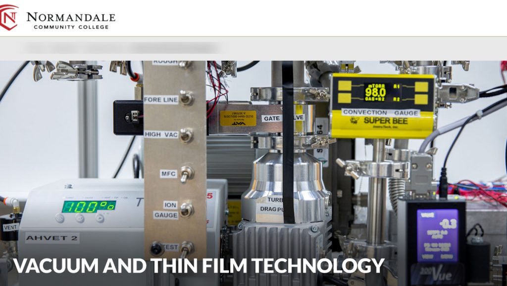 If you are interested in the Normandale Vacuum Technology course, or learning more about Vacuum Systems, you may also want to read more about the free ebook Normandale Community College’s Nancy Louwagie helped write: Free Ebook on Vacuum Technology